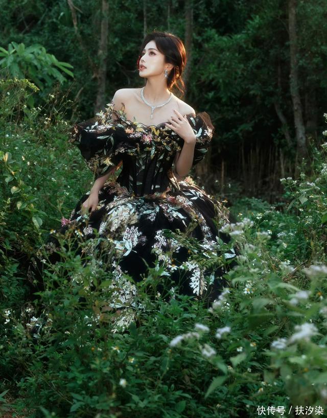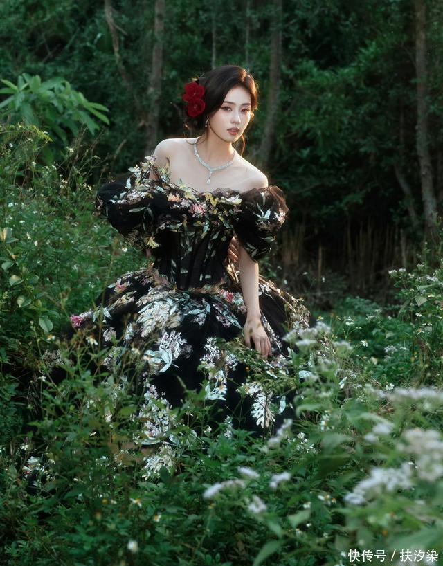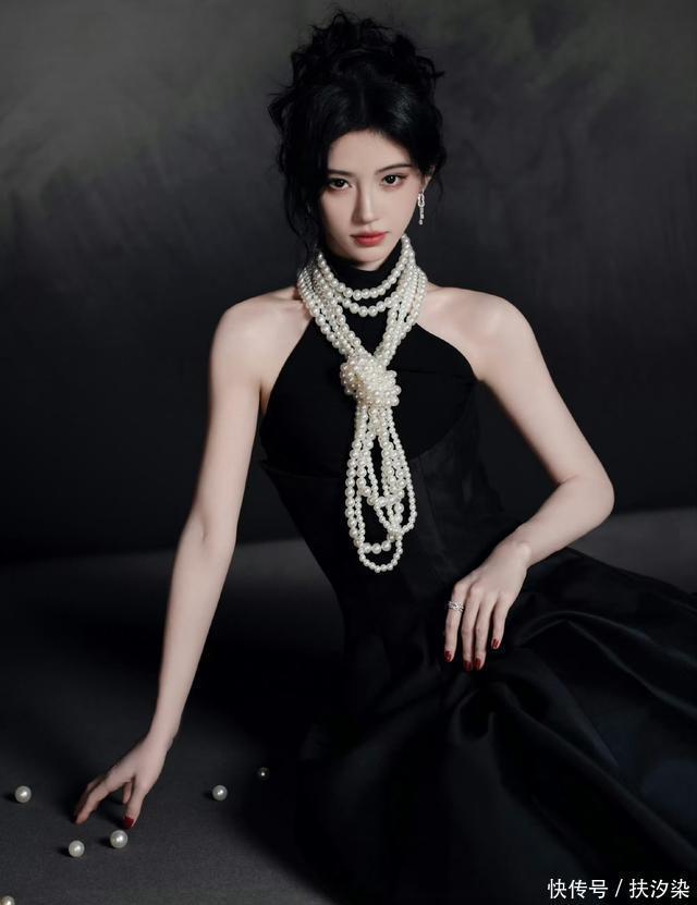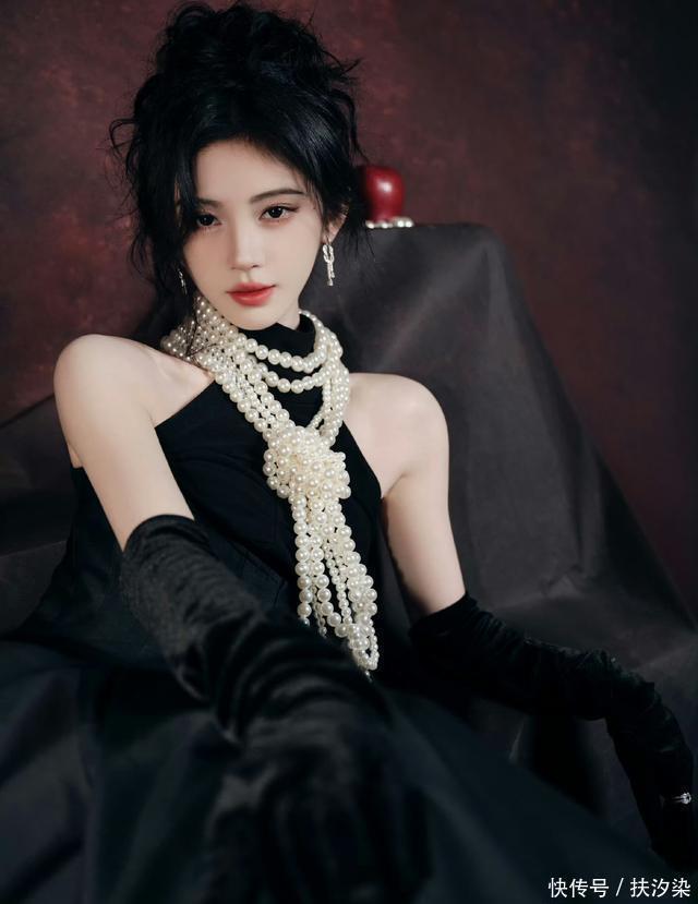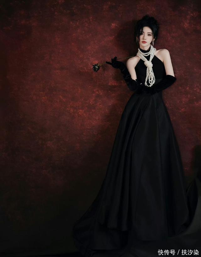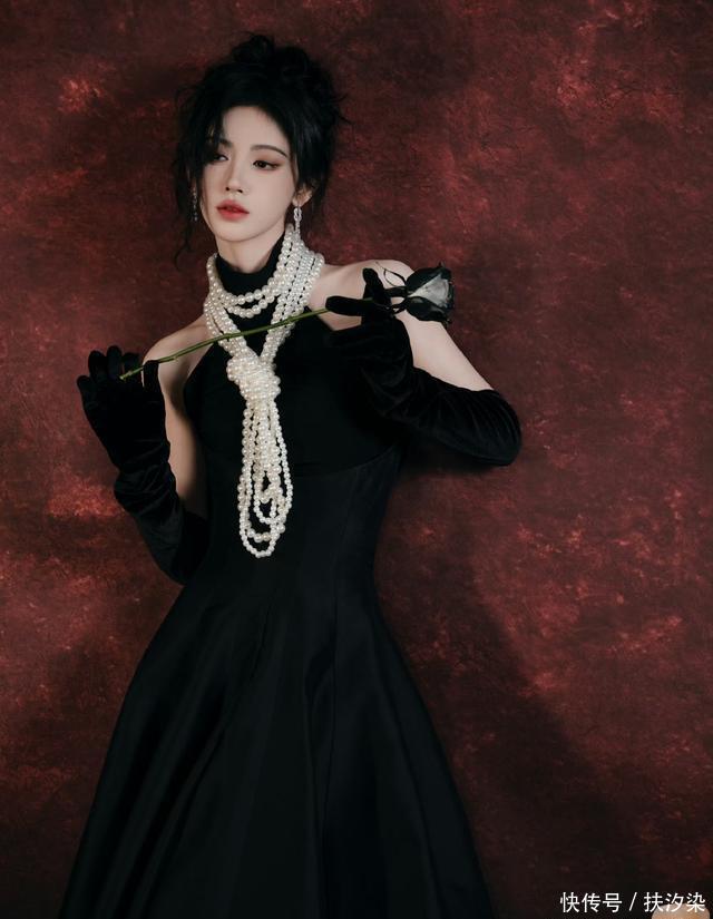 鞠婧祎珍珠名怜 鞠婧祎身穿露肩黑色丝绒长裙为基底,通过极简剪裁平衡珠宝的繁复感,丝绒长手套+红色指甲油强化“优雅神秘”与“酷飒女王”的双重特质。