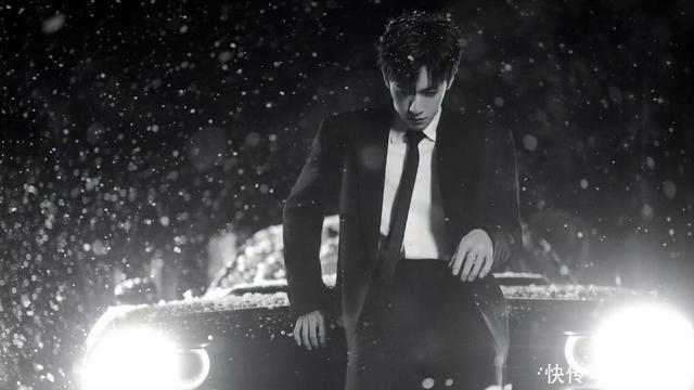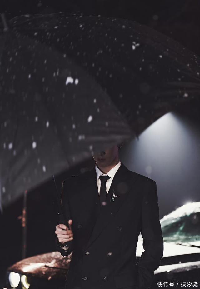 李昀锐撑伞半遮面 李昀锐以雪幕为背景,撑黑色长伞半遮面容,身穿利落剪裁的全黑西装,抓拍时伞面半遮的构图营造神秘感。