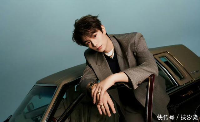 丁禹兮优雅琥珀 丁禹兮身着琥珀色印花西装,内搭浅金色纹理衬衫,背头造型凸显雅痞气质。